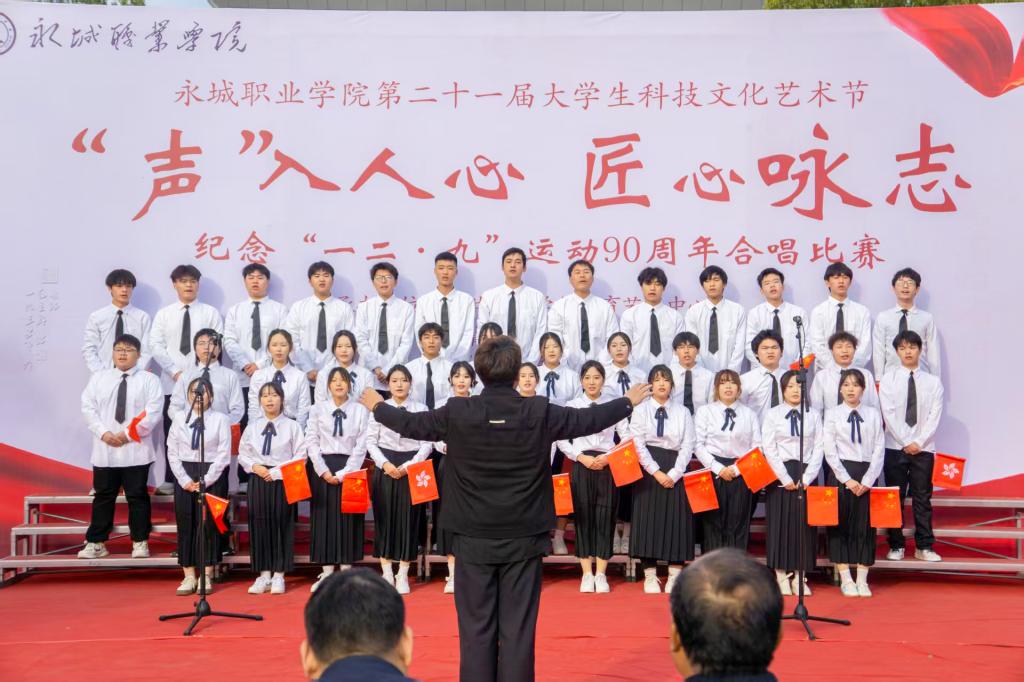 本次合唱比赛作为我院大学生科技文化艺术节的重要组成部分,由公共课教学与体育艺术中心、院团委、文化艺术系联合承办,是学院落实“以美育人、以文化人”教育理念的具体举措。各承办单位党政负责人、电子信息工程系党支部负责人、各系团总支书记与500余名学生代表共同聆听了这场红色视听盛宴。(文/吕清 图/吕起)
